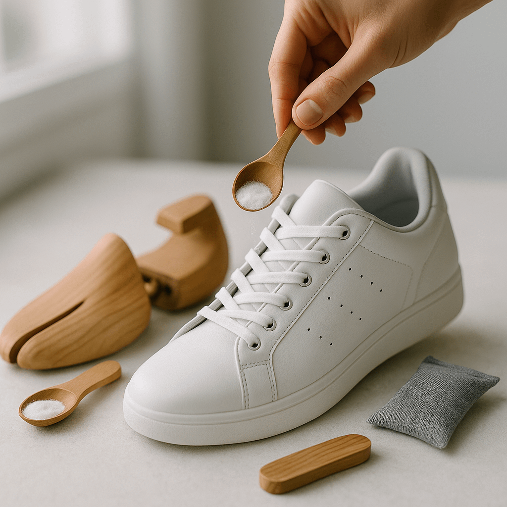 - Natron → bindet Gerüche und wirkt antibakteriell. Einfach in den Schuh streuen, über Nacht einwirken lassen.